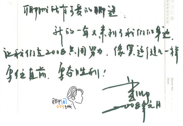 Post author:卿国卿城 Post published:2008年1月14日 Post category:董卿留言 董卿送台历和最新留言 2008-1-14 14:21:46 卿城所有可爱的卿迷: 新的一年又来到了我们的身边。让我们在2008共同努力,像奥运健儿一样勇往直前,勇夺胜利! 董卿 2008年元月 董卿手写祝福 转载请注明出处 董卿签名并赠送台历25本 转载请注明出处 董卿签名并赠送台历25本 转载请注明出处 董卿签名并赠送台历25本 转载请注明出处 董卿签名并赠送台历25本 转载请注明出处 董卿签名并赠送台历25本 转载请注明出处 董卿签名并赠送台历25本 转载请注明出处 你可能也喜欢 2014董卿发给贴吧的生日祝福 2014年2月20日 董卿送给卿国卿城12周年的生日礼物 2017年5月27日