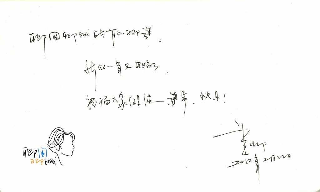 Post author:卿国卿城 Post published:2010年2月23日 Post category:董卿留言 2010年的新年问候 2010-2-23 20:51:12 卿国卿城所有的卿迷: 新的一年又开始了, 祝福大家健康、进步、快乐! 董卿 董卿手写祝福 转载请注明出处 你可能也喜欢 祝福卿城五周年快乐! 2010年5月27日 感谢大家 2015年7月6日